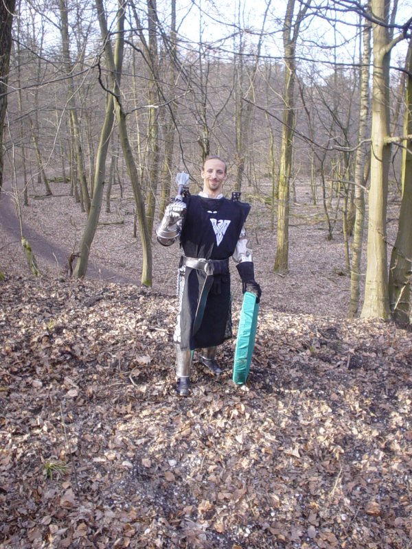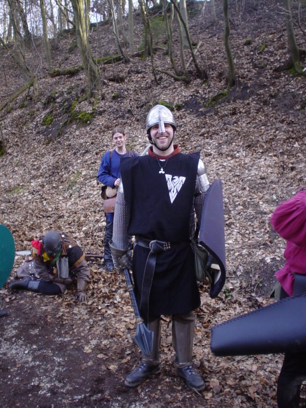Shawn's kit: Scale Armour by me, spaulders from Caleb, elbows by Wise Ogre, full greaves from Russian armoury. He is also putting together a 15th century outfit, but does not want to wear it until it is fully assembled.